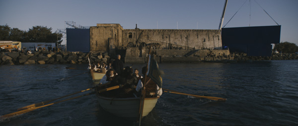 Finally, they used a matte created with a 2D file sequence projected onto the actual texture, producing an ink-bleed effect that reveals the live-action through this matte, giving an illusion of something moving toward you, bleeding into the real Coriakin. "You could say we pulled magic from nature," said Richard.