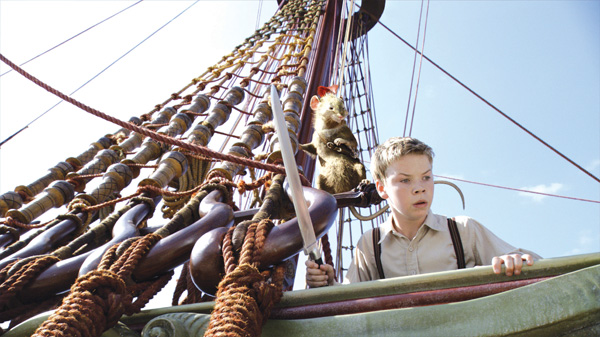 At one point, as the pages begin to turn, Lucy panics and slams her hand down to stop them. The Senate team recreated that moment of interaction as the page folds under her arm, and rotoscoped her arm back over the top of the CG. It required them to figure just how much CG flipping was needed between cutting in and out of the live action hand movement.