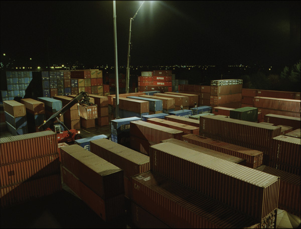 Brendan captured all of his reference photos for the cg containers at the shoot to ensure the lighting was the same. As soon as the crew finished their shots and moved on to a new point of view, he would follow up with his camera. All of the distant background, plus the haze over the scene, was created at Mr X by matte painter Milan Schere.