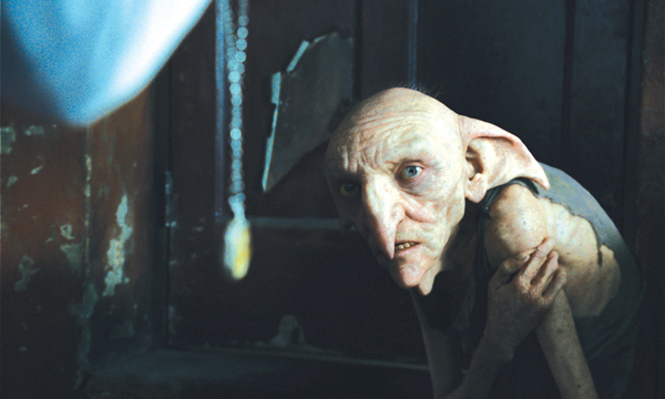 Humanizing Christian said, “For the bodies we created clean base meshes over the original scan data using Topogun, so we could add subdivisions to the model for finer detail work in Mudbox, or reposing the model inside Maya. Delicate areas like eyes and mouth were designed for a range of facial expressions and to look more appealing, and we ensured our modelling work-flow would allow us to transfer large sets of blend shapes onto any model changes, at any point.” The Real Dobby CG Supervisor Andy Kind worked on lighting for the elves’ scenes, especially interior shots. He said, “We built on our recent skin shading technology, using multiple subsurface scattering techniques. To light scenes, we used mostly ‘bleed cards’ of HDRI textures from the set mapped onto simple geometry on cards. By scaling and positioning this geometry around the characters in Maya, based on the real lights on set, we controlled the intensity of the light and the softness of shadows.” Matching Textures Tim Burke shot a reference and clean plates, but the takes that David Yates chose were those of Harry interacting with the stunt double. To achieve the paintwork, they went to the studio to shoot texture reference of Harry’s wardrobe and hands to help rebuild parts of Harry that the double obscured by re-projecting and animating textures. Where CG and real skin and cloth textures are closely juxtaposed, shaders from a core library allow the artist to build up materials from the same components to preserve continuity of lighting, balanced in the composite. Out of This World “What was exciting about the apparation was that there is no real world event like it - the only way to visualize it was by using CG. We originally tried nCloth simulations for the deformations that the apparating characters undergo, but no matter how far the cloth parameters were set, they still resembled cloth too much. So we did further volumetric rendering along the incident vector to give the streaking and fluid movement a nebulous feel, with some cloudy noise to make the characters appear ephemeral. Illumination FX and motion blur were applied over the top of this.” |