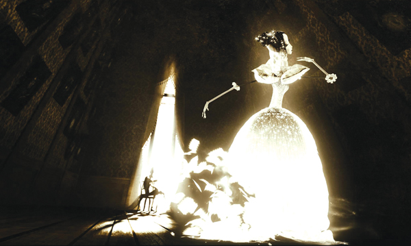 | Dumbledore’s Ghost The ghost of Dumbledore was a brief but critical effect in the story. The task began with a clean plate of the corridor in which the ghost materialises, and the actor shot on green screen as a separate element. They built a simple digi-double for him, preparing to project his performance onto this, and then placed him in a spatially correct position into the corridor. That gave a starting point for the particle simulation. Because the director didn’t want to see him fully resolved throughout the four shots, they started animating patches of his texture that grow over the body of the digi-double and were used to emit and attract Maya particles of the correct colour and position, rendered in RenderMan. The ghost remains obscured and mysterious up until the moment he extends his hand and becomes recognisable as Dumbledore. The corridor was actually re-built in CG, based on the clean plate which had been lit and shot as it should appear. They could derive their lighting from this and use the recreated geometry to cast shadows and control the interactions with dust and particles against the walls and picture frames. |