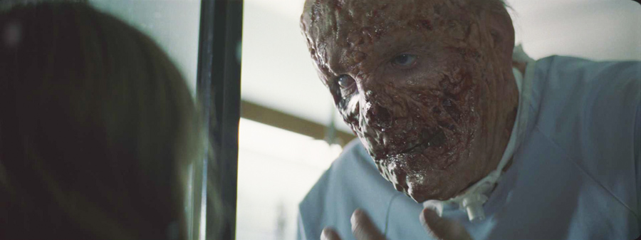 A mass of CG fire was required for a dramatic scene in a hospital in which one of Abby’s victims explodes into flames. In camera, a stunt actor replacing a nurse had a small amount of practical fire, which Method tripled in volume, and the flames dressing the hospital bed were doubled. But by the final shot the room is engulfed in CG fire and black smoke gathers below the ceiling. “During a shoot a production is not permitted to place actors in a closed set, so nothing had been overhead at all. But Matt wanted this fire to feel enclosed with smoke collecting at the top of the room." For this they created Houdini fire and smoke through dynamic operators called DOPS. To blend the effect around the deformations at the edges of the bed, which was moving with the actress’s performance, some practical fire elements were employed also.