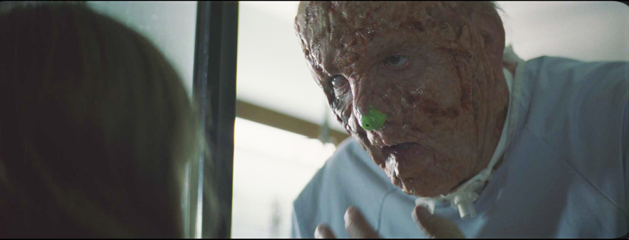 But some shots were also handled as green screen, which meant placing the character into the hospital environment where we see Abby visiting him at the window. Completing the sequence, involving 12 shots, required swapping back and forth between green screen shots and the others taken on set. “We were given the background as both stills and moving plates but as usual, the ‘ideal’ background shot was often not quite there, especially the ones in which the camera was trained down at Abby, who was outside the window with CG snow falling behind her. The reflection also had to be retained on the window from the green screen plate and combined with water vapour.”