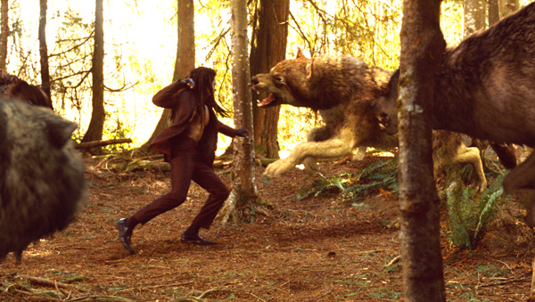 All wolf shots were done outdoors, without sets, and shot on 35mm film. Shooting began in March 2009 and shots were delivered in September. The shots were designed in Vista Vision, a higher resolution widescreen variant of the 35 mm motion picture film format. Owing to the shot designs, Phil didn’t want to be bound to a predetermined camera move. He wanted the animation to drive the camera, and so he chose a larger format camera that allowed post camera moves, thereby allowing the wolves to perform the way they wanted to perform and letting the animators go with it.
