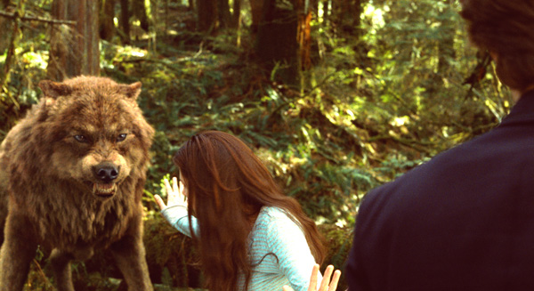 Director Chris Weitz wanted to give the CG wolves the eyes of their corresponding human characters as a separate effect, especially for shots in which the character Jacob watches Bella and we see her reflected in his wolf’s eye. His aim was to let their eyes serve as windows to their souls, inspired by the fact that real wolves communicate a great deal with their eyes, although Phil said he suspects the CG eyes could only have worked subliminally, “No one could have recognised those eyes so far out of context.”