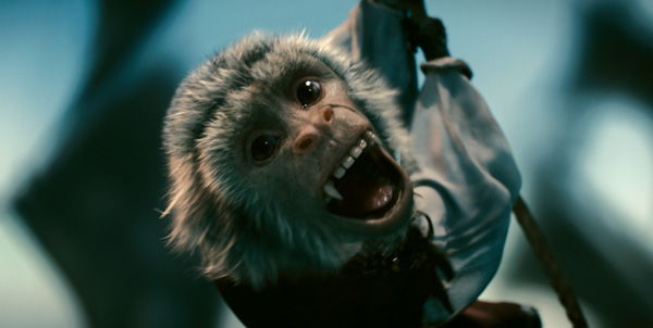 | “The animation in particular took a long time to lock down. The frog drops onto the actor’s shoulder, falling from overhead, jumps from one side of the frame to the other and was such a tiny nuance of animation, in seven tricky shots. Although we kept the glass jar in the plate for the composite, we still had to model a 3D jar, building the glass with depth so we could create passes to reproduce the refraction and reflection that would occur with a real glass jar. “When you look through the jar at the frogs, they ripple and change shape accordingly. We spent months on it, starting before the shoot with about eight different designs in myriad variations but the director wanted a simple, realistic frog. We completed four iterations, some with exaggerated limbs or other parts but the result is virtually true to life, a real poison-dart frog with a puffed throat and lens movements in the eyes.” Walk the Walk “The cleanup was the tricky part, often needing a bit more than only the peg portion. The animation required a few trials to lock down while making sure that leg was perfectly straight! We weren’t match moving what the actor is doing but what it would look like if he weren’t bending his knee. No Magic “We had all lighting scenarios to deal with as well. When Jack clashes with Angelica, posing as himself, in the sword fight in the Captain’s Daughter pub, the fire-lit interior is nearly dark. As the pair fight in the rafters overhead, they are wearing complicated rigs against the smoky ceiling behind them. To clean out the wires, we replaced the roof in CG and we also built the CG barrels you see in the background.” Frozen in Time Although Mohen’s team had no one on set, he spent a month in San Francisco working with ILM’s supervisor there, Ben Snow, before the shoot. He took the opportunity to discuss technical approaches for the bottle sequences and what data they would need from set to complete the work in post. Their main sequence involved Blackbeard’s full collection of bottles and takes place below decks on his ship. To get started on looks and aesthetics, the team focused on live action props in the plates – some model ships and a cabinet holding empty bottles, which the production crew had supplied as practical elements for the wider shots. In CG, the ILM team replaced the models, built ships and environments for the existing bottles, and built a large number of CG bottles with ships and environments inside. Magic Moment In the end, the project went one step further when one compositor, Ben Warner, tried putting canon fire and small explosions on one of the ships as if it were trapped in an endless battle. The director really liked this idea – it wasn’t just capturing weather and time but also a narrative moment in the bottles, so that each ship possessed its own story. Lighting Interaction The representation of the bottles changed from shot to shot. For close ups, practical bottles in the cabinet were removed to make way for the fully CG assets, and for the camera when taking reverse angle shots looking back at the actors as they discussed the ships. In these close shots, the lighting interaction between the ship and the bottle needed to be carefully designed and controlled, which was best achieved when both were built in CG. Ocean Looks In all, the team completed over 40 of these ship and bottle shots. The shots were composed almost entirely of the plate material and their CG, with some rotoscope work from the plates and a few blue screen shots of Jack’s face shot later in the schedule. The CG pipeline at the facility comprises a combination of in-house and off-the shelf software. Modelling is done in Maya, creature simulations, effects and lighting are proprietary. Texturing, rotoscoping and paint are all done with a combination of tools. Compositing is in Nuke. Unforgiving “One challenge was simply how unforgiving stereo really is for a VFX artist. The small cheats and inaccuracies are no longer viable. The viewer’s brain knows naturally how to perceive stereo vision, thus every detail and mistake is instantly recognized. Even a pixel or two out of place between left and right eyes will spoil the depth of a shot. It demands complete accuracy and the quality control is time-consuming.” Independent Render Compositing was all done in Nuke. Tracking was, again, done with proprietary tools but the stereo made it quite complex, demanding absolute precision. The layout team was finding the stereo plates substantially harder to manage but they have now advanced their pipeline and feel they can move onto other projects with more confidence. “It’s not just the tools but the artists themselves who advance. We all learned how to judge stereo images with our own eyes – at first, we were all tempted to rely on 3D glasses for this, but it’s not always the best technique to identify errors. Once the eye and brain are trained, it can be much more effective to just flip back and forth between left and right images – without glasses. By detecting shifts between them, you can determine exactly where and why errors are occurring.” |