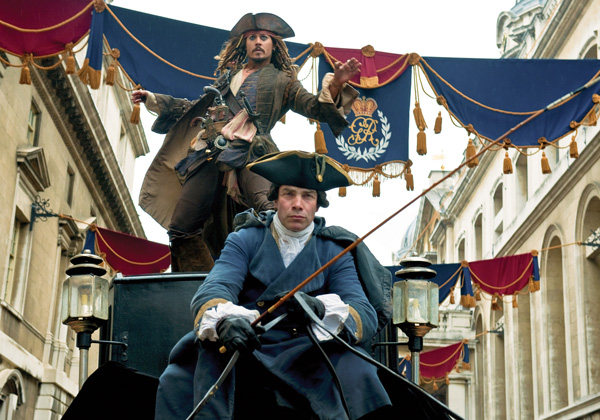 | f the over 300 stereoscopic visual effects shots Cinesite created for ‘On Stranger Tides’, roughly 200 were required for the daring and comical carriage chase scene through London. In fact, according to the production’s original storyboards, the scene was intended to be even longer but a large chunk of it was cut out before the shoot as the director Rob Marshall continued to change his mind.