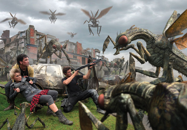Still more fantastic animals are the Camouflage Beast, blending cleverly into the background, and the Killer Fungus, formerly human and now a menacing spore. Other VFX work includes a CG helicopter and plane, the gateway called ‘Anomaly’ to the worlds in which the creatures and the team encounter each other, and some spectacular environmental work including a post-apocalyptic cityscape incorporating a blasted, burned out version of the company's offices.