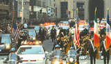“On the day of the shoot, we shot lots of stills of the extras and used these to texture the crowd and get their looks right. We built enough CG police cars and motorbikes to look as though the procession extended right down the avenue, with hundreds of people in the procession and thousands of spectators. We’ve had quite a lot of experience with crowds like this and have a solid pipeline, and it worked out well for us,” Theo said.