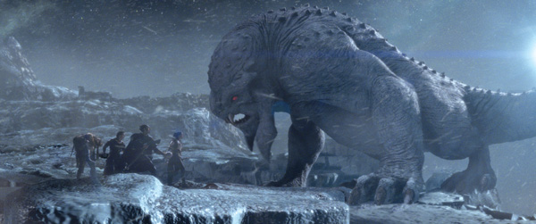 Obviously, nothing like the Frost Beast exists in nature, so Eric Petey’s team animated this creature without the benefit of motion capture. It was all done by hand to mimic the motion of a large cat, but at the same time it had to be as powerful as a rhinoceros, able to burst through anything in its path. That combination created challenges for computer graphics supervisor Eric Fernandes and the effects animation team, which had to shatter ice and rock as the Frost Beast chases after the heroes. It required a coordinated team effort to put such a menacing creature on screen.